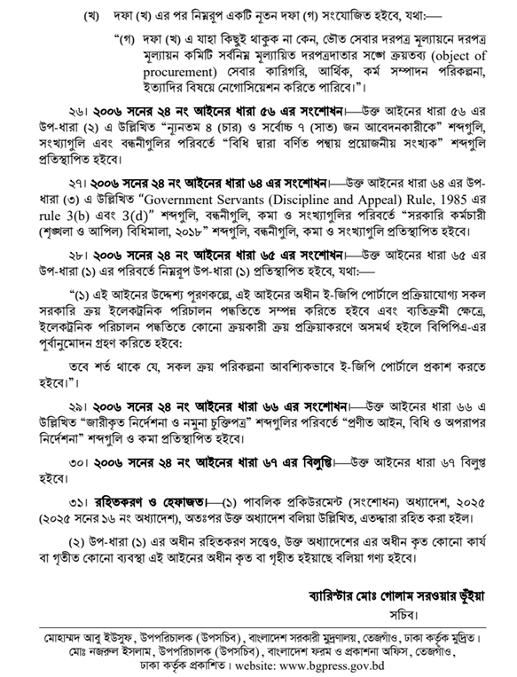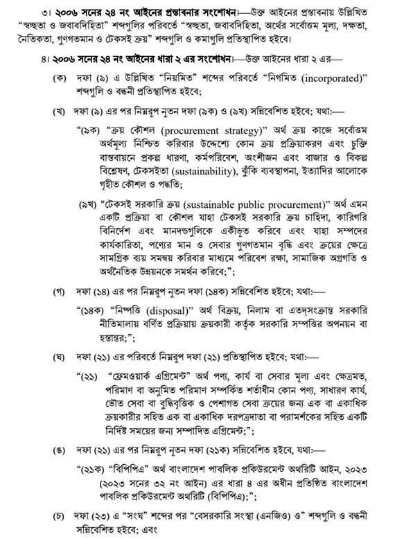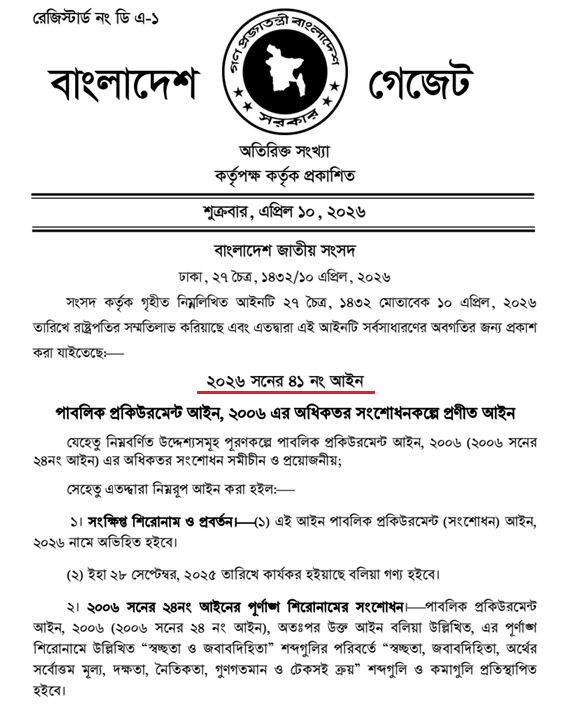 পাবলিক প্রকিউরমেন্ট (সংশোধন) আইন, ২০২৬