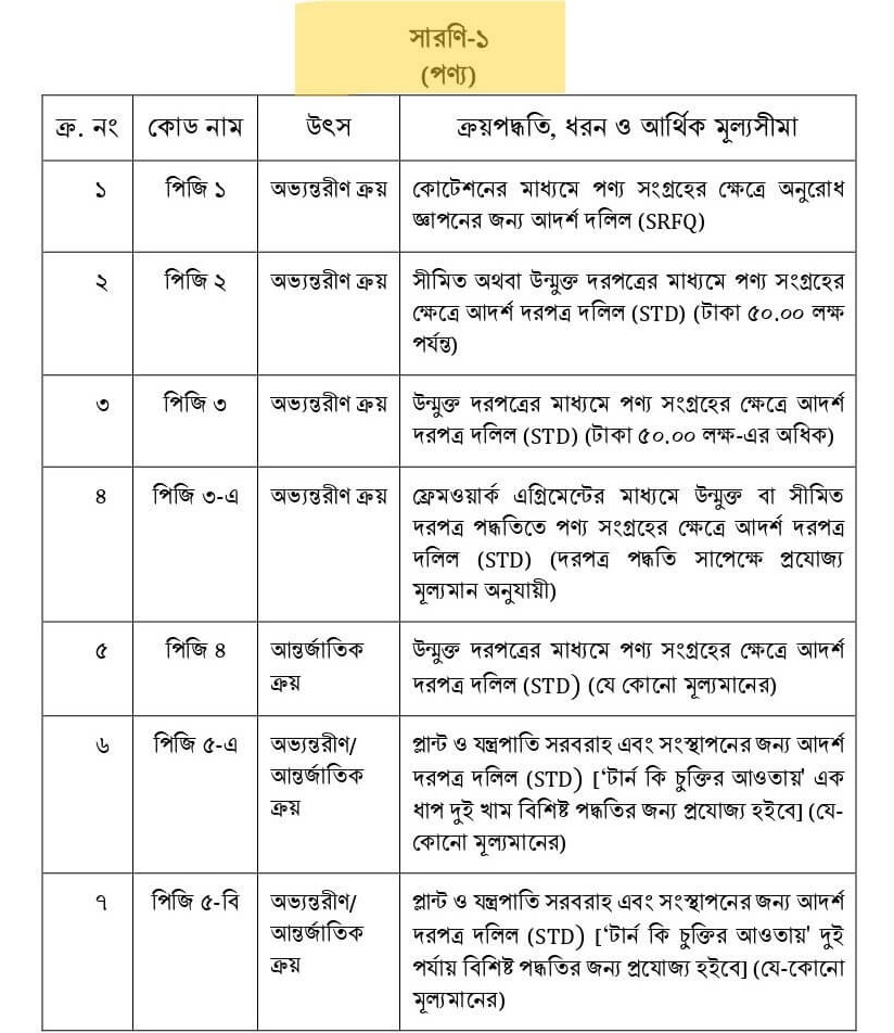 তফসিল-১ঃ পণ্য ও সংশ্লিষ্ট সেবার আদর্শ দলিল [বিধি ৪(১) দ্রঃ]