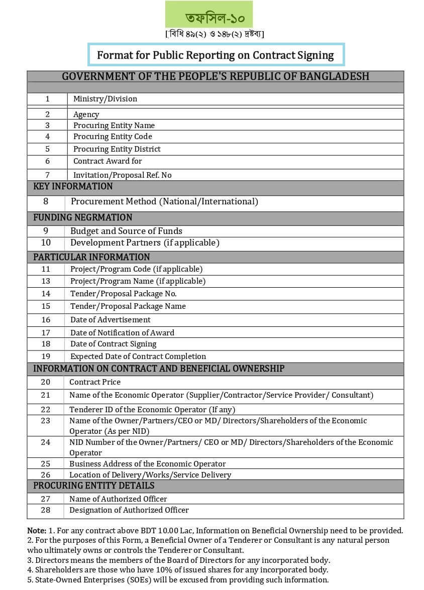 - তফসিল-১০: Public Reporting on Contract Signing