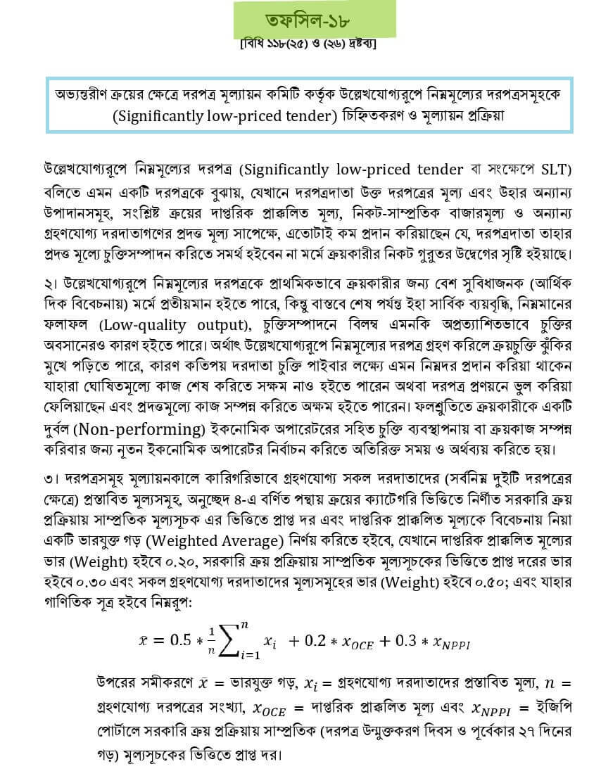 - তফসিল-১৮: low-priced tender চিহ্নিতকরণ