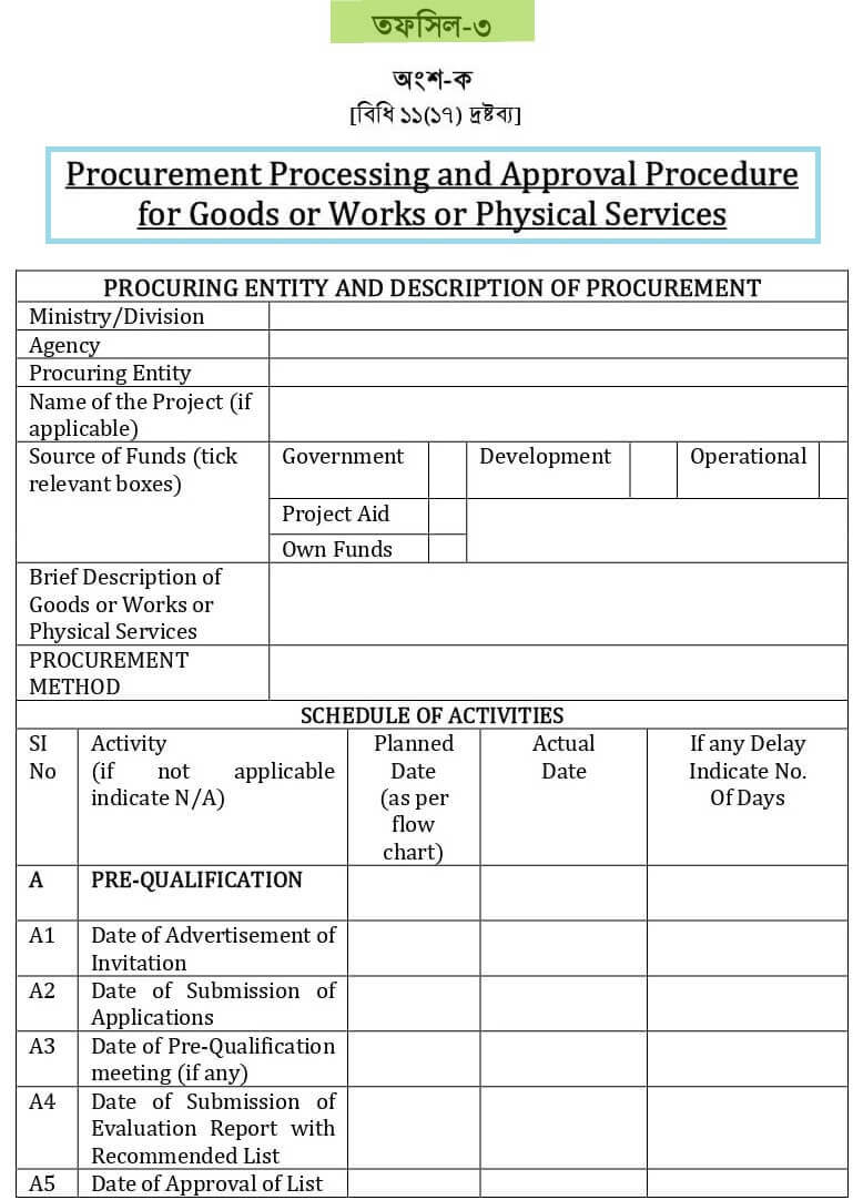 তফসিল-৩ঃ Procurement Processing and Approval Procedure