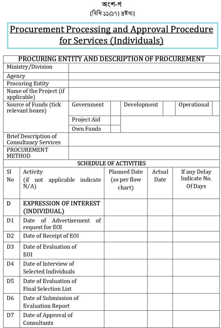 - অংশ-গঃ Procurement Processing and Approval Procedure for Services (Individuals) [বিধি ১১(১৭) দ্রঃ]