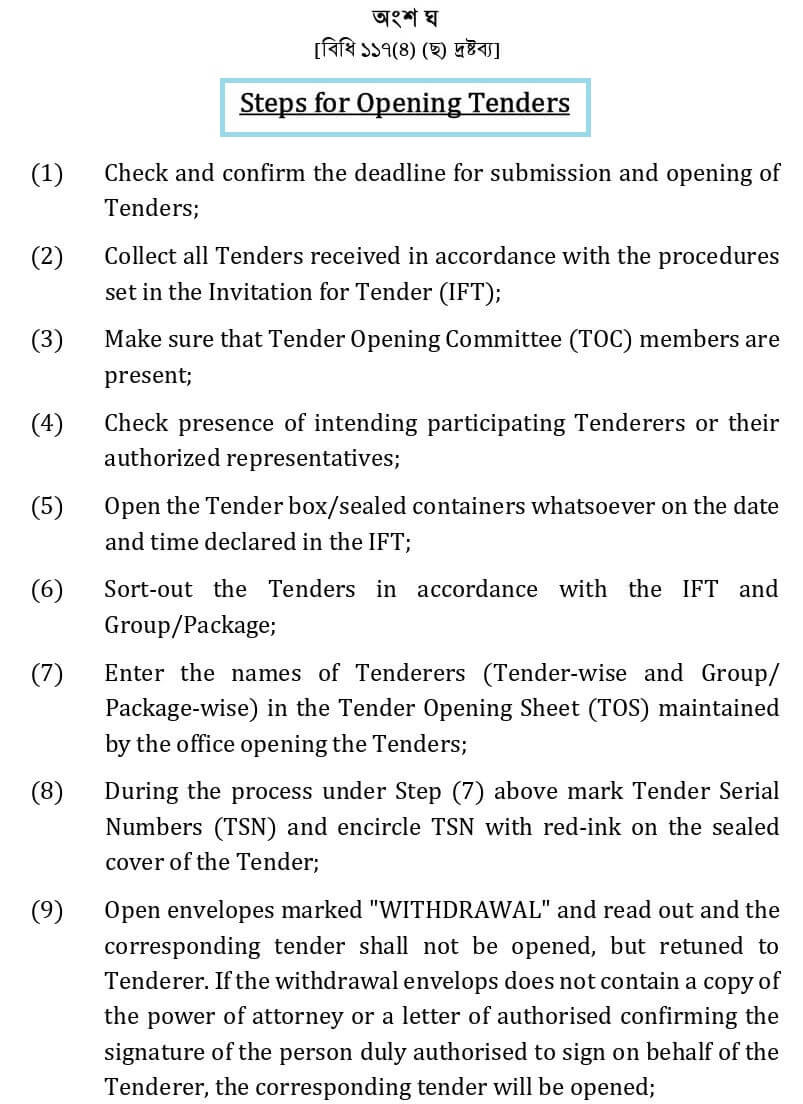 - অংশ-ঘঃ Steps for Opening Tenders [বিধি ১১৭(৪)(ছ) দ্রঃ]