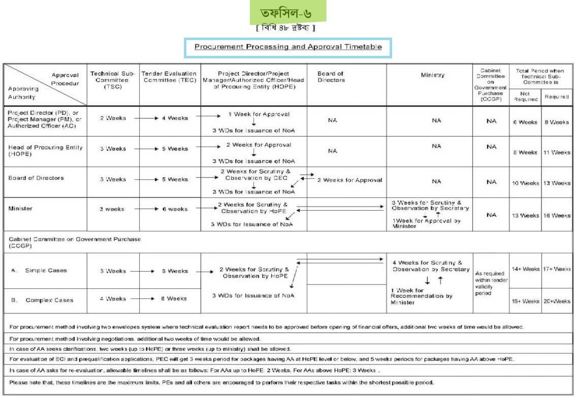 তফসিল-৬ঃ Procurement Processing and Approval Timetable (PPR-25)
