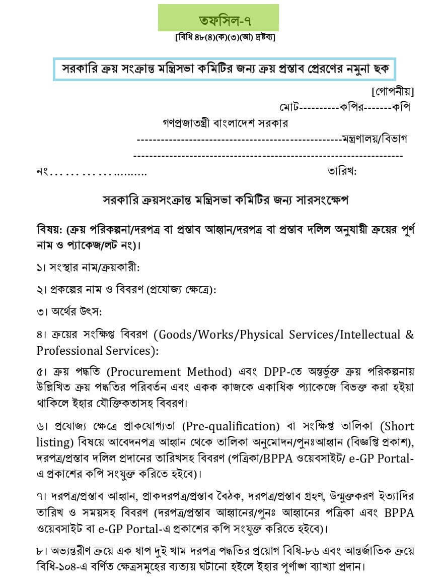 - তফসিল-৭: CCGP তে প্রস্তাব প্রেরণের ছক