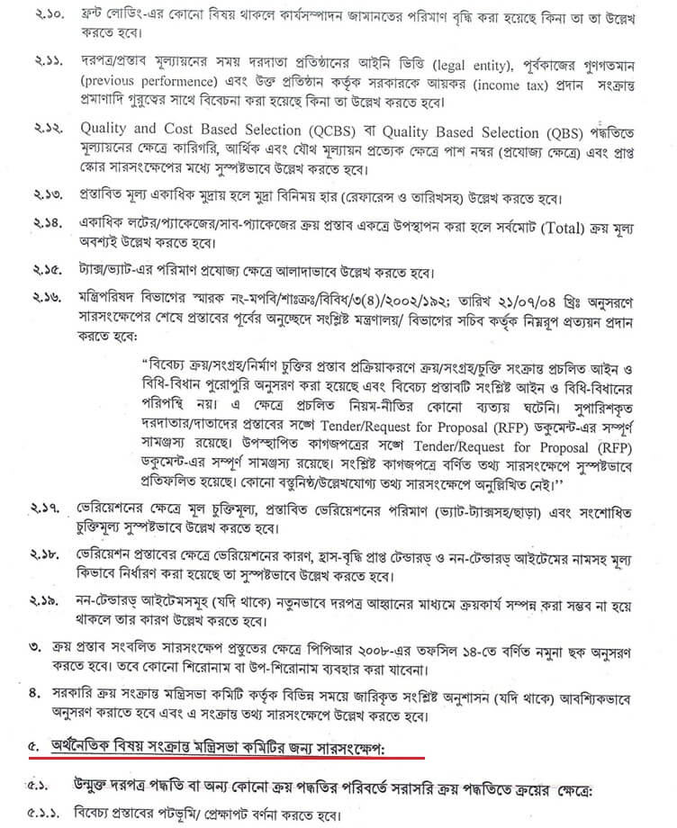 - তফসিল-৭: CCGP তে প্রস্তাব প্রেরণের ছক