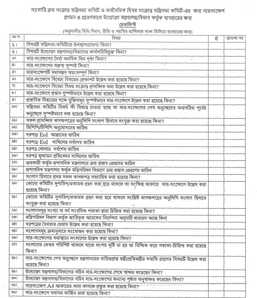 - তফসিল-৪: Processing & Approval চেকলিষ্ট