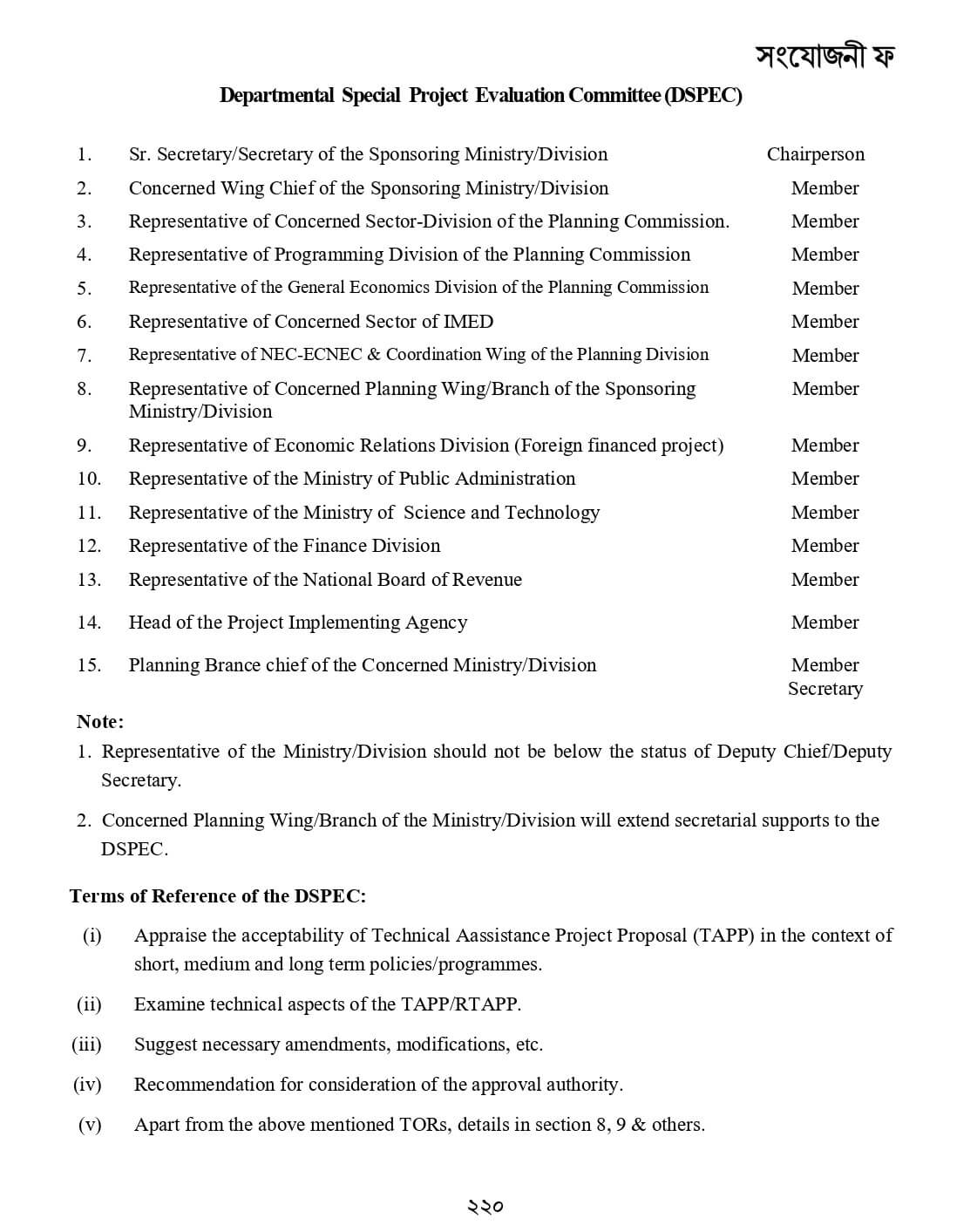 সংযোজনীঃ কমিটিসমূহের গঠন