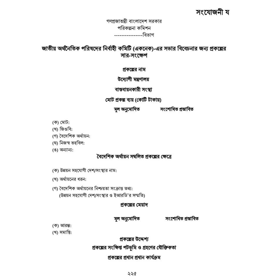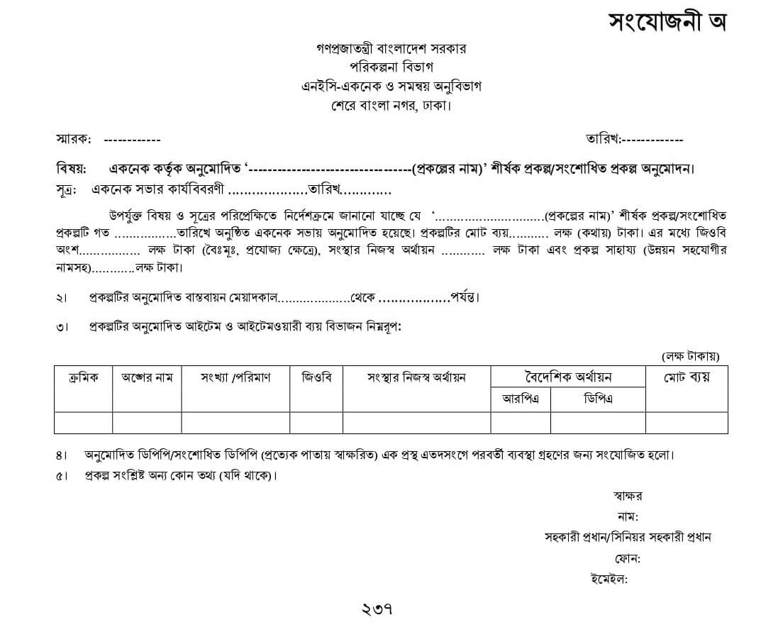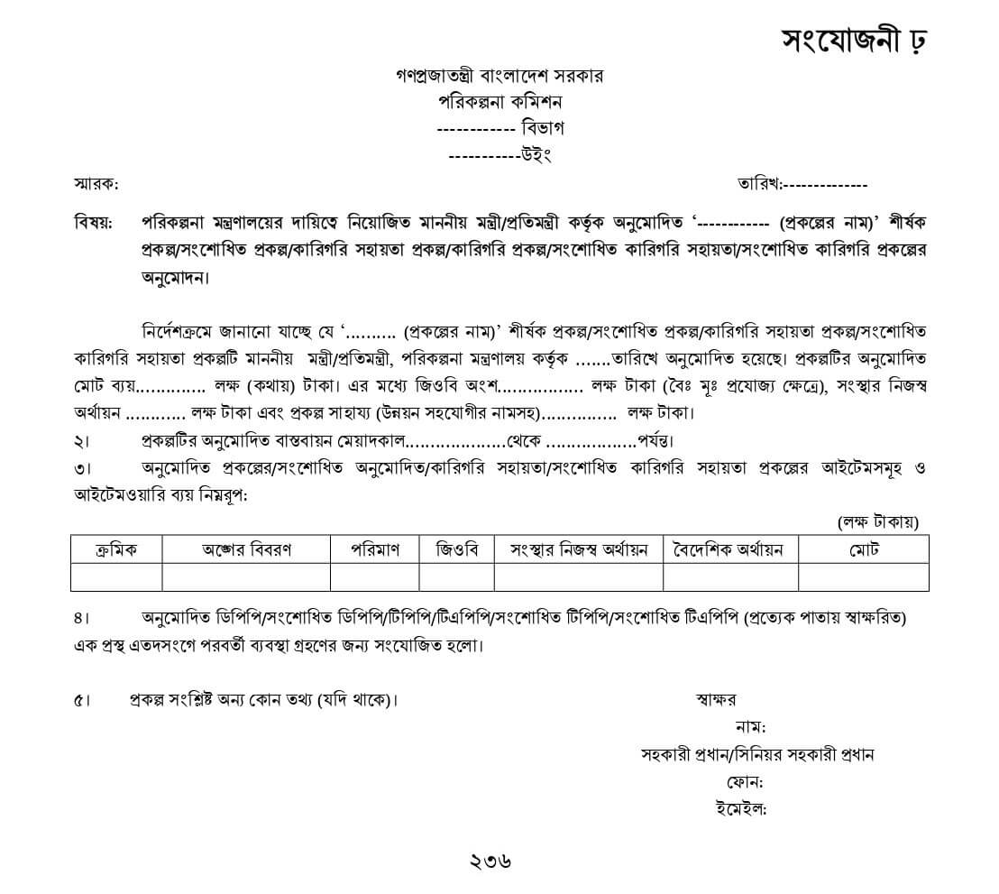 DPP প্রণয়ন নির্দেশিকা ২০২২ সংযোজনীঃ সার-সংক্ষেপ, কার্যপত্র, প্রকল্পের অনুমোদন পত্র, প্রশাসনিক আদেশের নমুনা