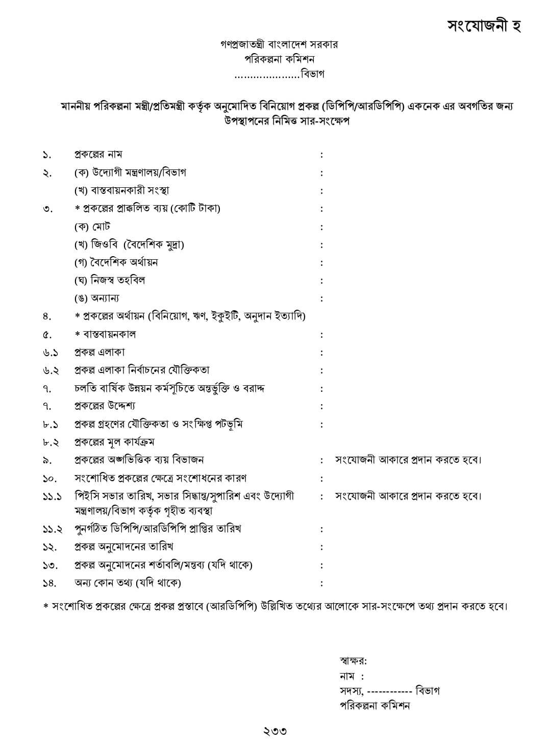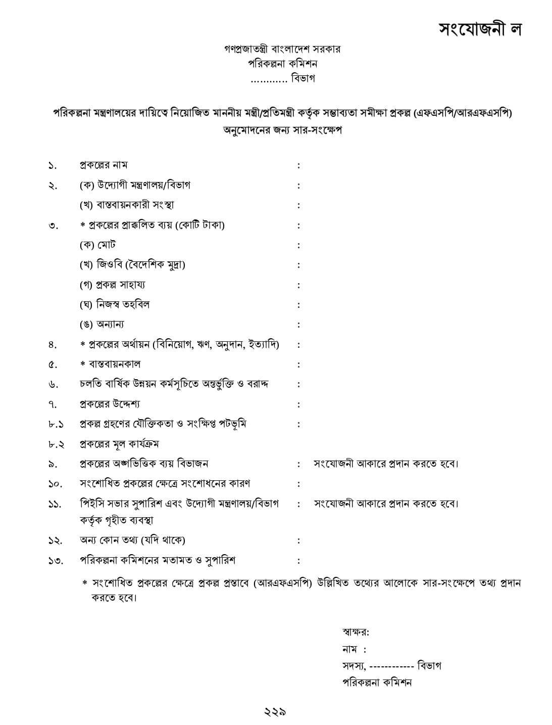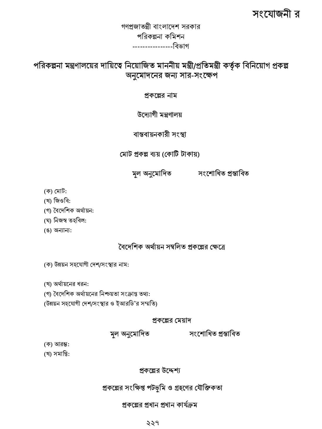 DPP প্রণয়ন নির্দেশিকা ২০২২ সংযোজনীঃ সার-সংক্ষেপ, কার্যপত্র, প্রকল্পের অনুমোদন পত্র, প্রশাসনিক আদেশের নমুনা