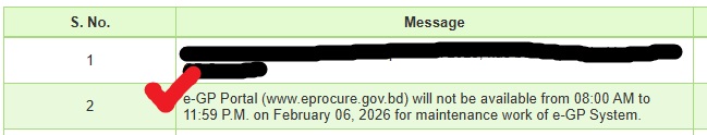 সর্বশেষ আপডেট (সকাল ১১:০০ ঘটিকা ০৯/০২/২৬ ইং তারিখ): ই-জিপি সাইট ব্যবহারে সমস্যা এখনও আছে।