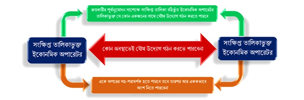 ইকোনমিক অপারেটর গনের যৌথ উদ্যোগ গঠনের ইচ্ছা ব্যক্তকরণই যৌথ উদ্যোগের অস্তিত্ব প্রমাণের জন্য যথেষ্ট হবে না বা সেভাবে দরপত্র প্রকিয়ায় অংশগ্রহণ করতে পারবে না [বিধি-৭০(১)]।
