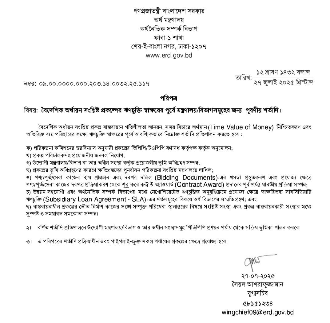 - অর্থ বিভাগের অনুমোদন: ঋণচুক্তি ও উন্নয়ন সহযোগীদের সঙ্গে সম্পাদিত উপ-চুক্তির শর্তাগুলোর জন্য অর্থ বিভাগ থেকে অনুমোদন নিতে হবে।